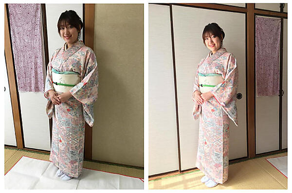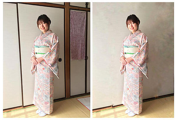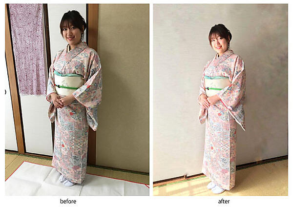 すっきりと生活感がなくなり、素敵な着物姿を収めた写真になりました。