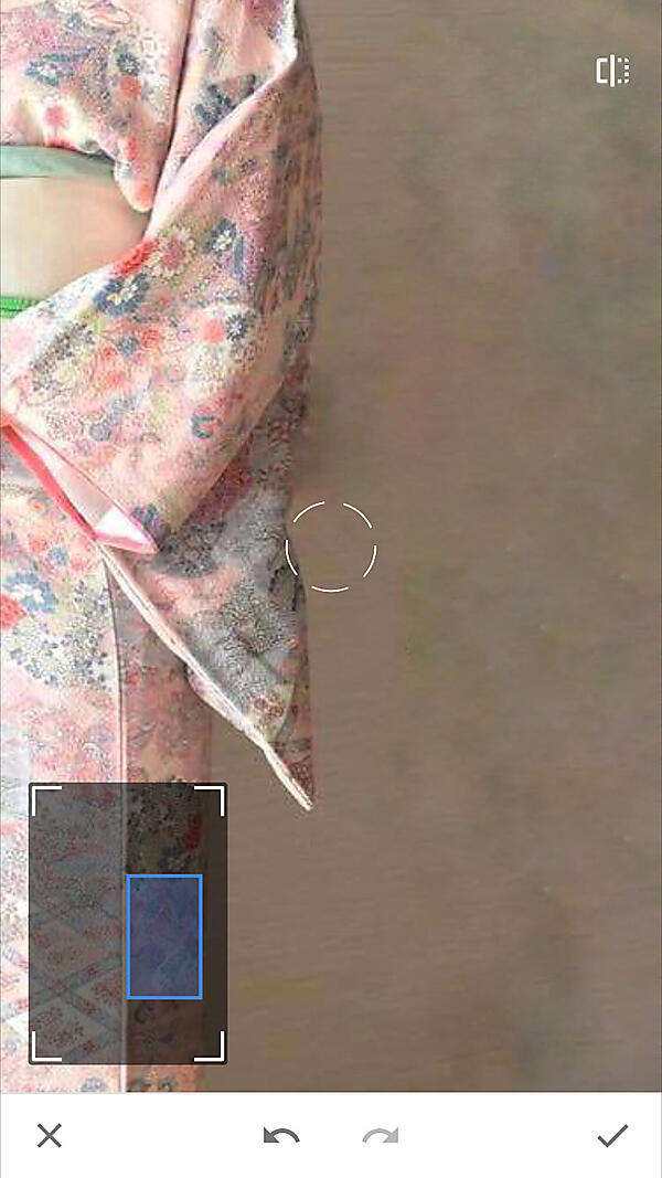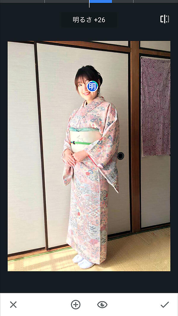 ※全体を明るくすると着物の柄が明るく分からなくなってしまうので、部分調整を使用。