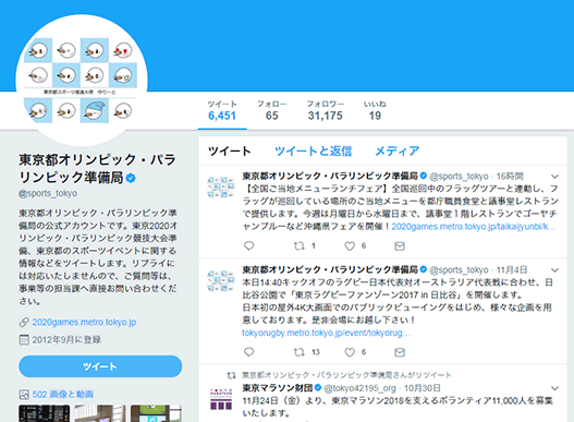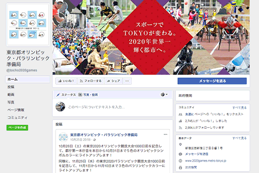 オリンピック・パラリンピック準備局サイトの他に、公式SNSアカウントはTwitterとFacebookがあります。松下さんはそのうち、東京2020大会やそれに向けた取組、障害者スポーツの普及などに関する情報の発信を行っています。