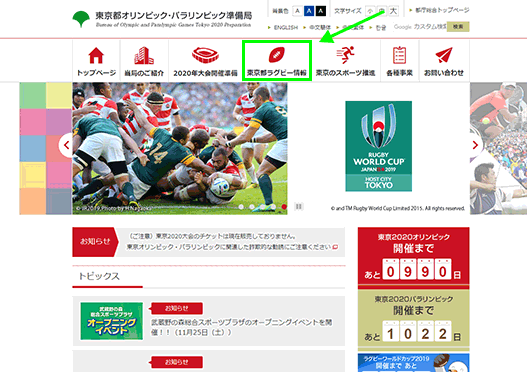 ちなみに、Webサイト内に、東京2020大会の前年(2019年)に開催が予定されている「東京都ラグビー情報」があるのは、スポーツ振興を担当していた部署が母体となっていることに関係しているからです。