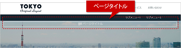 ※「ページタイトル」は、会社名やウェブサイト名、店舗名を配置する場所ですが、キャッチコピーを配置するエリアとしても使うことができます。選択したレイアウトによって、配置場所が異なる場合があります。