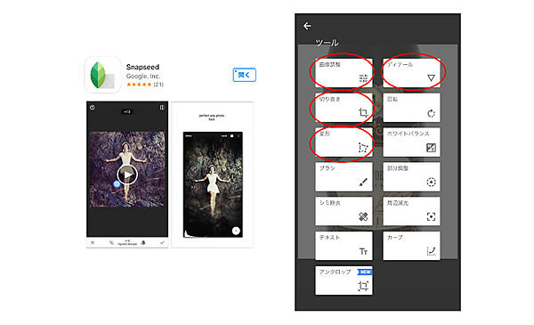 これらの点を解決するために、使用するアプリはこの連載の第1回でも使用した”snapseed” 無料です。