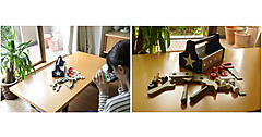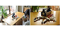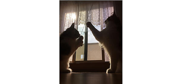 この状況下で猫ちゃんがじゃれている様子を撮影するには、窓を背景にし、シルエットで撮影してみました。
