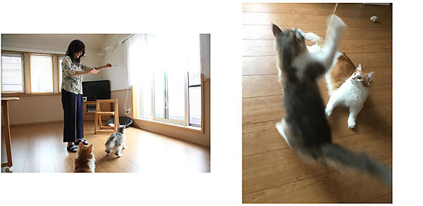 猫じゃらしを操って、なるべく俯瞰になるように撮影しました。