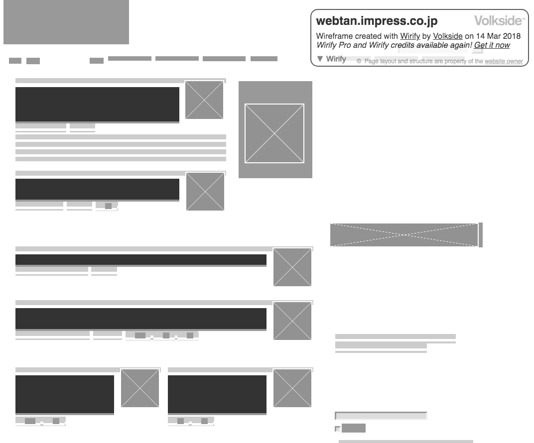 サイトをワイヤーフレームに変換してくれるWirifyというサービスが便利!複雑に見えるサイトもWFに落とし込んでみるとシンプルだったりする。ジャンルによって共通点が見えてきたりして勉強になる!ブックマークに登録するだけで使えます。https://t.co/uIsMQ6rNlX pic.twitter.com/8JEOfF5ayM