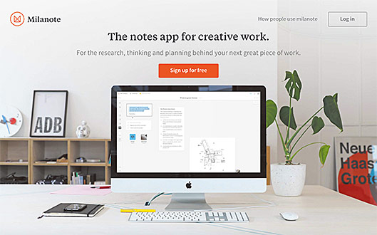 「The notes app for creative work - Milanote」図2はテキストや画像、Todoリストをホワイトボード上に付箋を貼り付けていく感覚で、オンラインノートを作成できる便利なサービスです。「説明するよりも見るほうが早い」とはよく言いますが、動画を用いて説明することで基本的な機能と「付箋を貼り付けていく」操作感が瞬時に理解できる内容になっています。