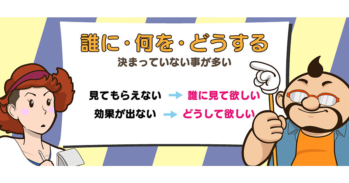 「ホームページを見てもらっても効果が出ない」→「ホームページを見た人にどうして欲しいのか」