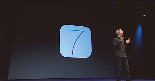 iOS 7では左ページの画像のように、ロゴにも多色のグラデーションが使われていて、UIにもグラデーションや奥行きの概念が取り入れられていました。そういったAppleが作り出したトレンドが、デザイン全体にも影響していると考えられます。
