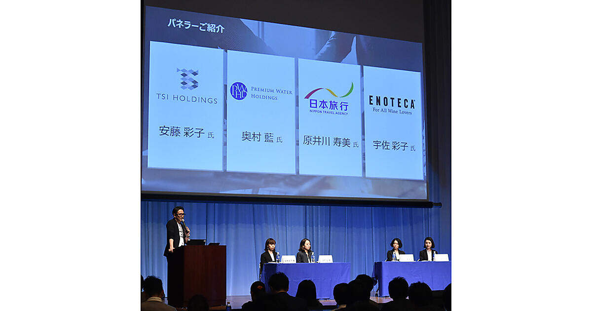 TSIホールディングスの安藤彩子氏、プレミアムウォーターの奥村藍氏、日本旅行の原井川寿美氏、エノテカの宇佐彩子氏がパネリストとして、ディスカッションを行った。モデレーターはブレインパッドの近藤嘉恒氏。アパレル、食品系商社、旅行業、小売業という異なる業種で、“デジマ女子”たちはどのようにマーケティング実務を行っているのだろうか。