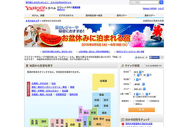 特に、お盆の帰省や旅行に関する需要は、まさに8月ならでは。2015年のお盆休みは、迎え日の8月13日(木)から送り日の16日(日)までが一般的です。早めに手配している人もいますが、宿泊や観光では直前需要もあります。ホームページでしっかりとアピールをしましょう。