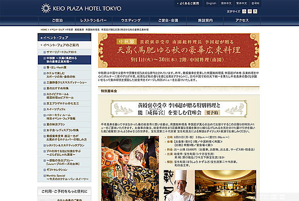 京王プラザホテル「天高く馬肥ゆる秋の豪華広東料理」
