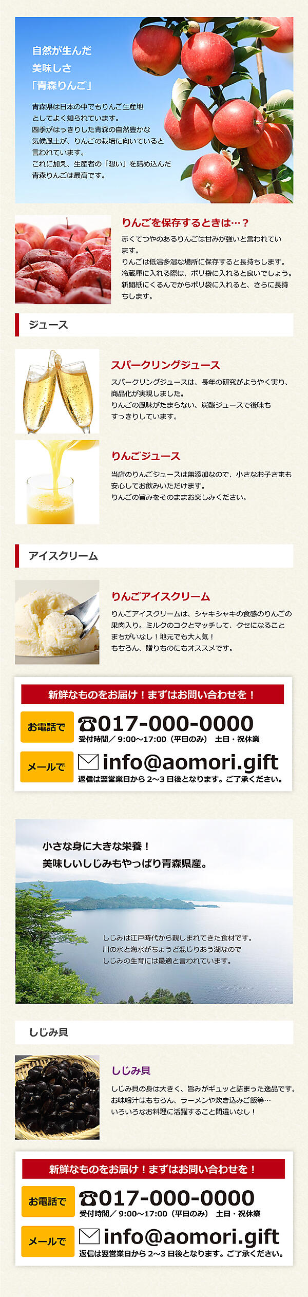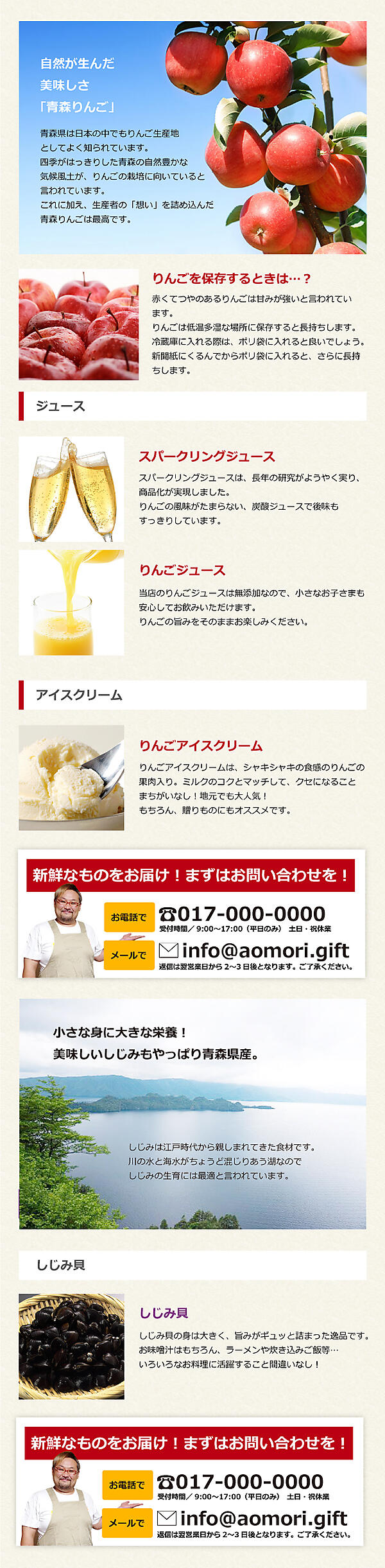 ちょっと大げさですが、りんごの商品が欲しいと思っている人にとっては、しじみの商品はどうでも良い(欲しくないから見ない)ということです。これらのことを考慮すると、それぞれのグループ毎に問い合わせボタンを配置した方が良い、ということになります。