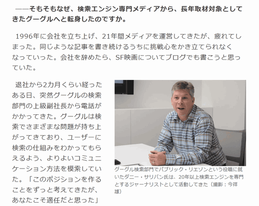 いまはグーグルの「中の人」であるダニー・サリバン氏のインタビュー記事が公開されている。