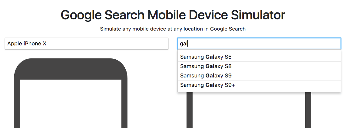 まず、シミュレーションしたいデバイスを指定する。オートコンプリート形式なので、デバイスの文字を入力すると該当機種をサジェストしてくれる。2つのデバイスの検索結果を比較することもできる。