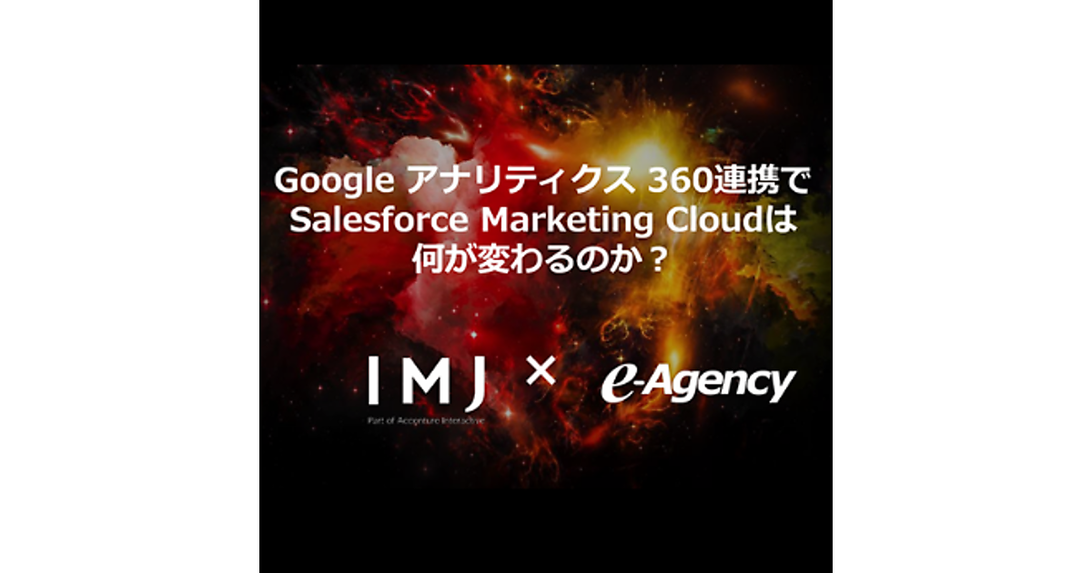 2018年7月に行われたSalesforce B2C CRM Conferenceでも紹介された、Marketing CloudとGoogle アナリティクス 360との連携ソリューション。今後もさまざまな機能が実装され、両プラットフォーム間の連携に向けた取り組みが強化される予定です。IMJでも継続的にその取り組みを紹介していきます。ぜひご期待ください。