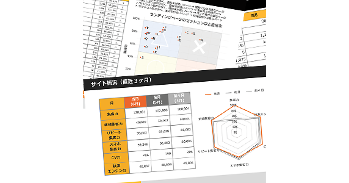 佐藤:直近3か月の売上が見られる「サイト概況」サマリーやレーダーチャートのページはGoogleアナリティクスにはないフォーマットです。6つの指標からサイトの現状を確認できる、視覚的にもわかりやすく説得力を持ったスライドだと思います。