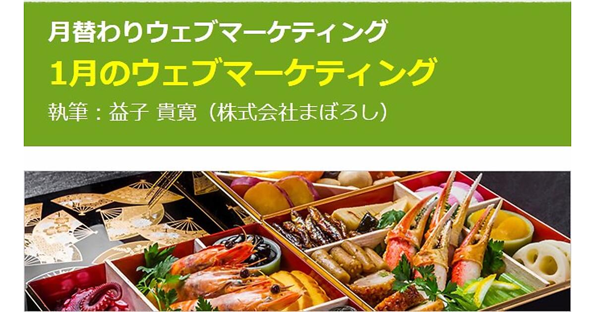 「月替わりウェブマーケティング」では、4月から3月までの1年間、月ごとのウェブマーケティングに関する取り組みを解説します。第10回は「1月のウェブマーケティング」。正月、初詣、初売り、成人式、新年会、冬のバーゲンなどがある1月に、どのようなウェブマーケティングが実施できるかを見ていきましょう。