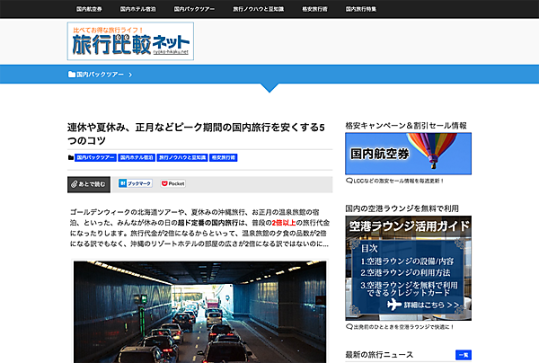 旅行比較ネット「連休や夏休み、正月などピーク期間の国内旅行を安くする5つのコツ」