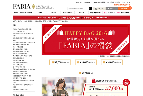 女性ファッション通販サイト FABIA(ファビア)「FABIA HAPPY BAG 2016」
