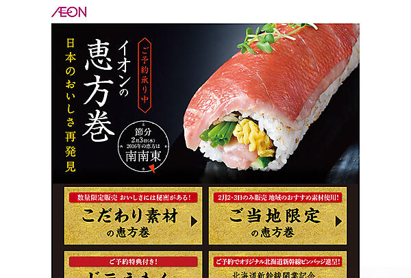 2月3日(水)の節分といえば、「豆まき」と「恵方巻き」。特に恵方巻きは、コンビニエンスストアや大手スーパーが力を入れており、関西だけでなく全国に浸透しつつあります。買って食べるのはもちろん、ご家庭で手づくりしてもよいでしょう。ちなみに、2016年の恵方は「南南東」です。