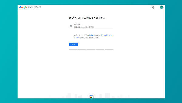 Google アカウントにログインしている場合には、「ビジネス名を入力してください。」と画面が切り替わる。