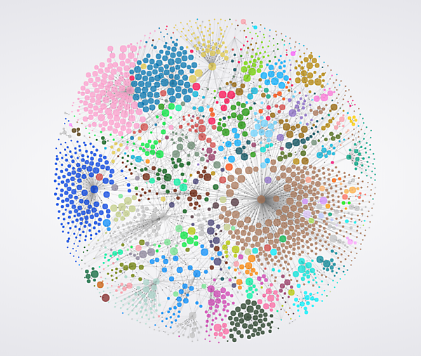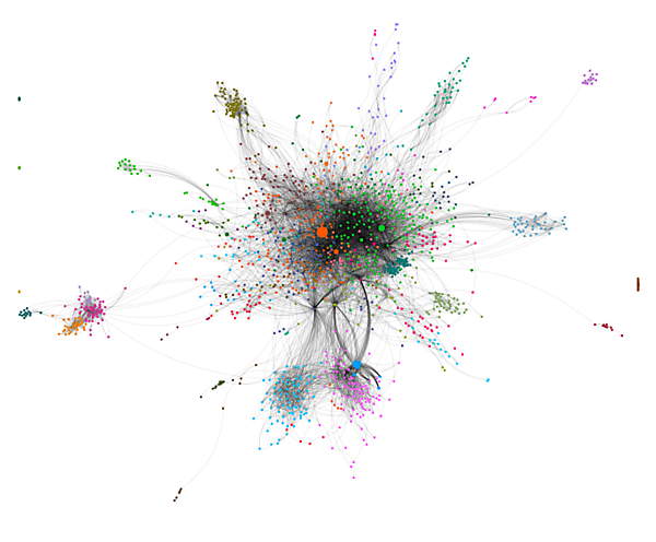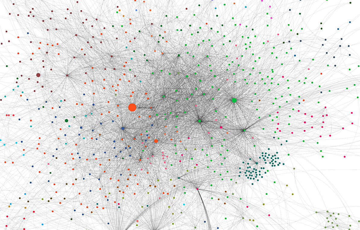 この記事の前編で示したビジュアルマップはすべてのリンクを調査したものだが、このビジュアルマップは、コンテキスト内リンクだけに目を向けてリンクネットワークを構築したという点で異なる。