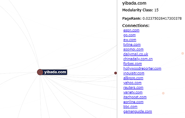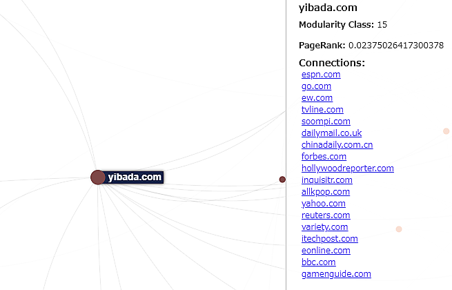 おそらく、こちらの方がニュースシンジケーションのネットワークをより正確に表しているだろう。というのも、グラフに影響を与えるサイト全体のリンク、ナビゲーションリンク、その他の非コンテキストリンクをより適切に解析しているからだ。