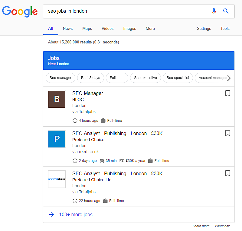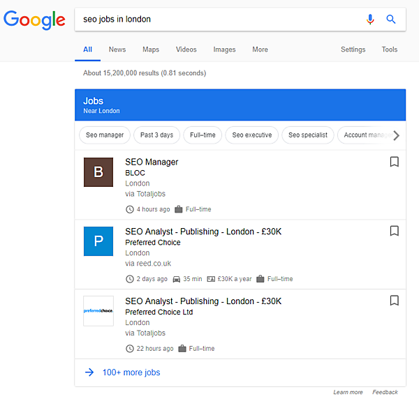 Googleしごと検索は、リスティングサイトから膨大な量のオーガニック検索情報を抽出している。競争するのは厳しいだろう。しかし、特にニッチな求人サイトを運営しているのならば、利用できる戦略はある。