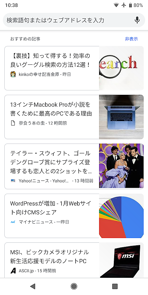 - Googleアプリ ―― アプリを立ち上げると表示されるディスカバー(Discover)という名称の機能