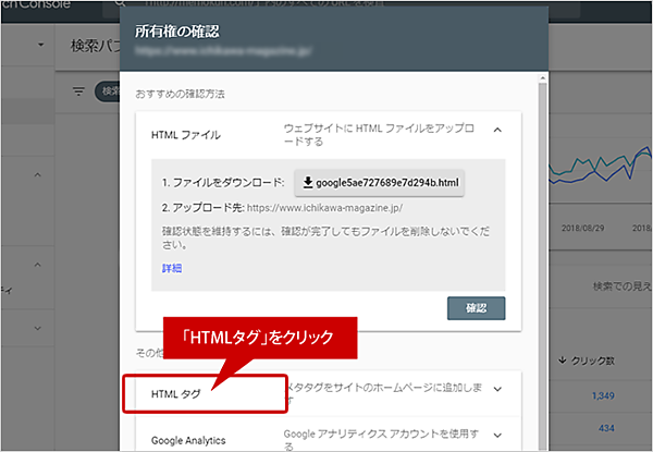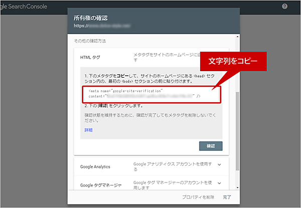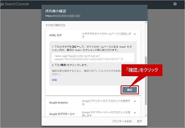 (5) 所有者の確認画面が表示されます。「その他の確認方法」で「HTMLタグ」をクリックします。