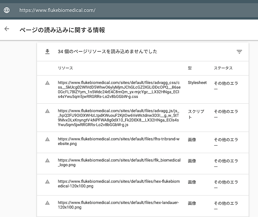 モバイルフレンドリー テスト ツールやURL検査ツールで、本来なら読み込まれるべきリソース(CSS、画像、JavaScriptなど)が読み込まれずに、「その他のエラー」になってしまうことがある。