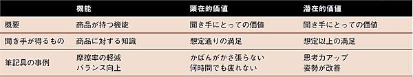 ▼「顕在的価値」筆記具の事例