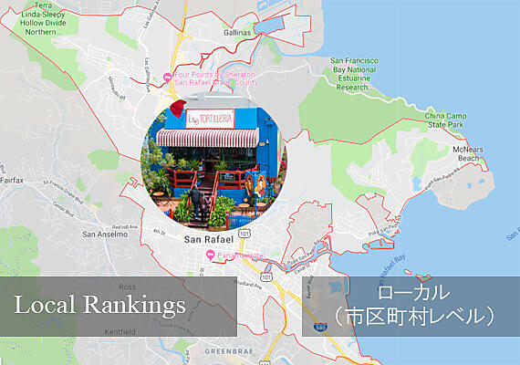 「ローカル」での検索対策は、先述したハイパーローカルの場合とほぼ同じだが、対象が1つの都市全体と広くなる。実際、「ローカルランキング」といえば、ほとんどの場合は、ビジネスが立地している都市の中での検索順位のことだと考える。