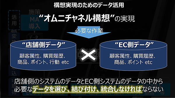 とあるアパレル企業は、ECサイトと全国の店舗と間で相互送客を行うオムニチャネル化にいち早く取り組んでいた。その一環として、マーケティング部長主導のもとMAツールを導入したのだが、そもそも、店舗やECサイトごとにデータがバラバラに管理されているという状況があった。