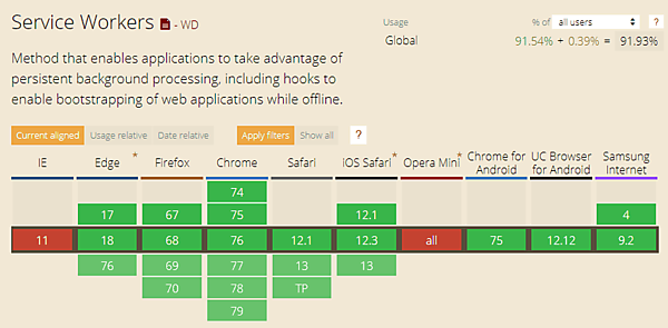僕と同じく、ジェイク・アーチボルド氏の「Is Service Worker Ready」ページを数年前から熱心にチェックし、ブラウザベンダーによる採用が増えている状況を目にしている人なら、Service Workerを採用するタイミングがまさに今であることがわかるだろう。