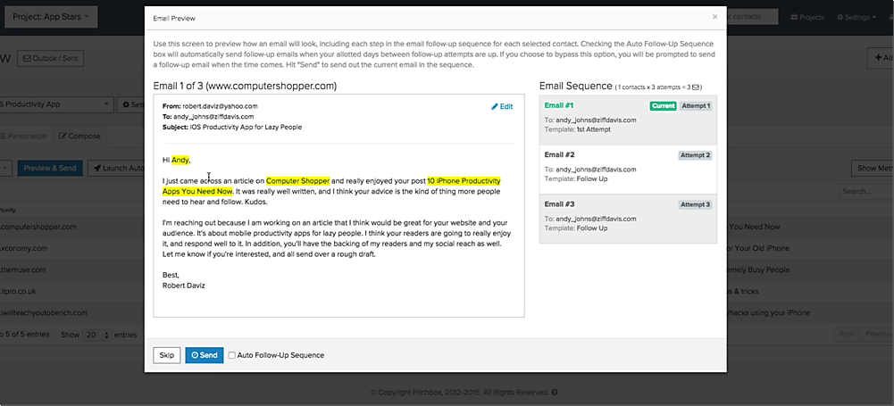 とはいえ1つくらいはツールを紹介しないとリンクビルディングのチュートリアルとは言えないだろう。そこで、ここではPitchboxをおすすめしたい。