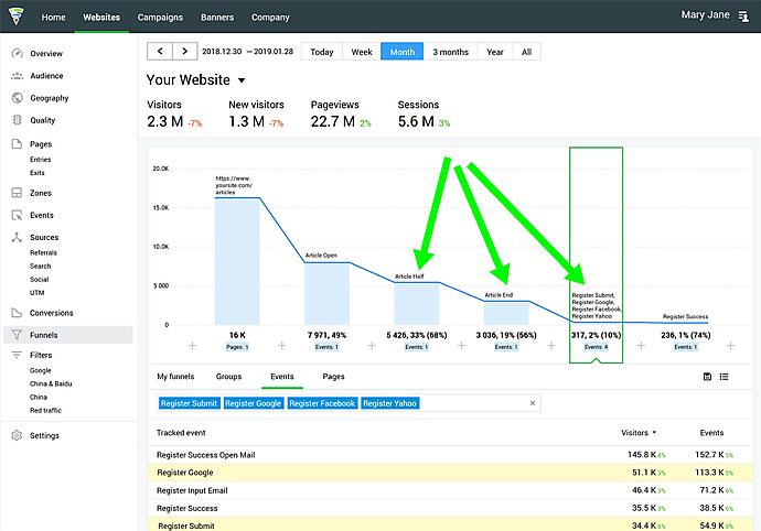 Fintezaは、ページ上における特定の行動に関するモニタリングとレポーティングに力を入れた無料の分析ソフトウェアだ。