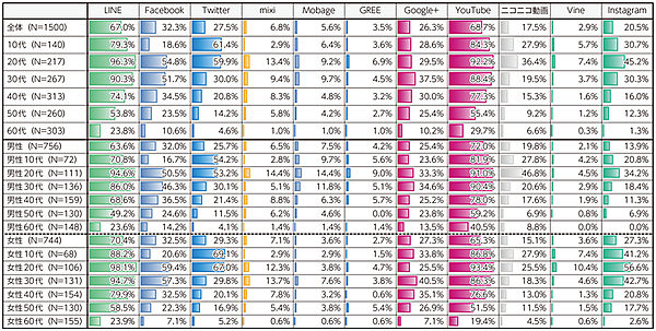 - 20代…LINE、Youtube、Twitter、Facebook、Instagram