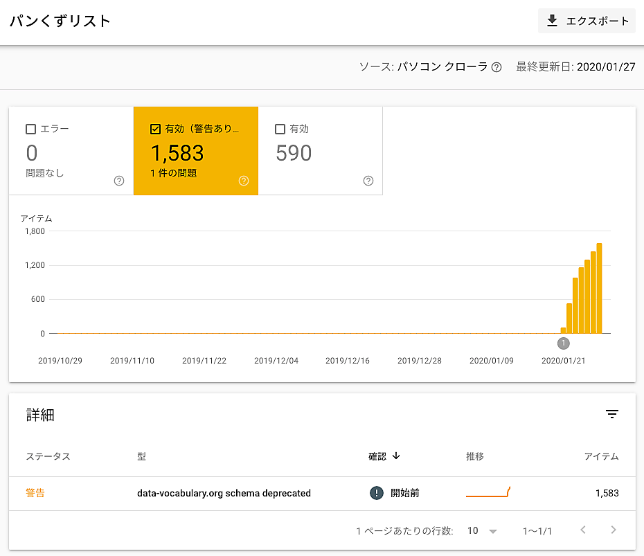 警告の内容が「data-vocabulary.org schema deprecated」となっており、多くの人には意味がわからないに違いない(筆者はフィードバックしたが改善されるかはわからない)。