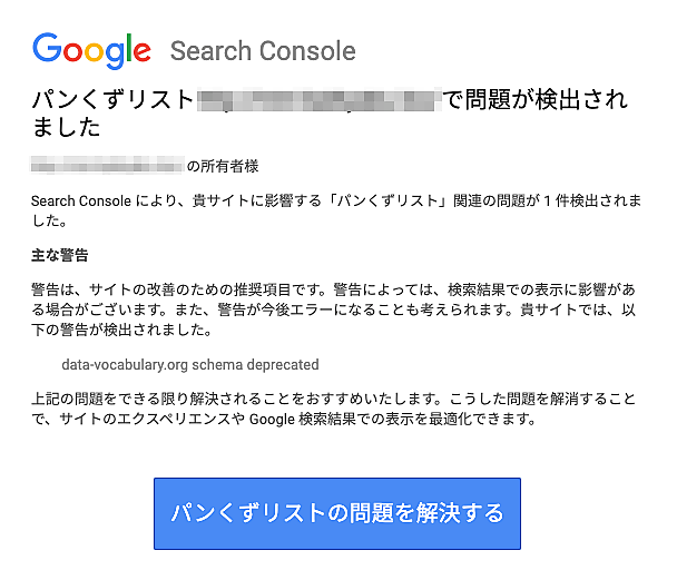data-vocabulary.orgでマークアップしていると、Search Consoleに警告が出る。