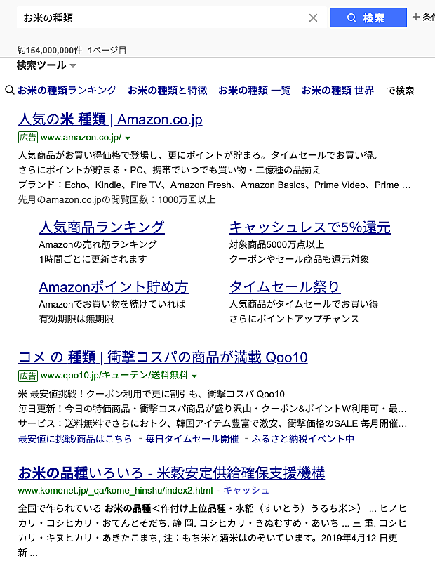 ところが、Yahoo!検索では同じクエリでも強調スニペットが出ていない。(広告の下の)オーガニック検索1位は、グーグルで強調スニペットの下に出ていたページだ。