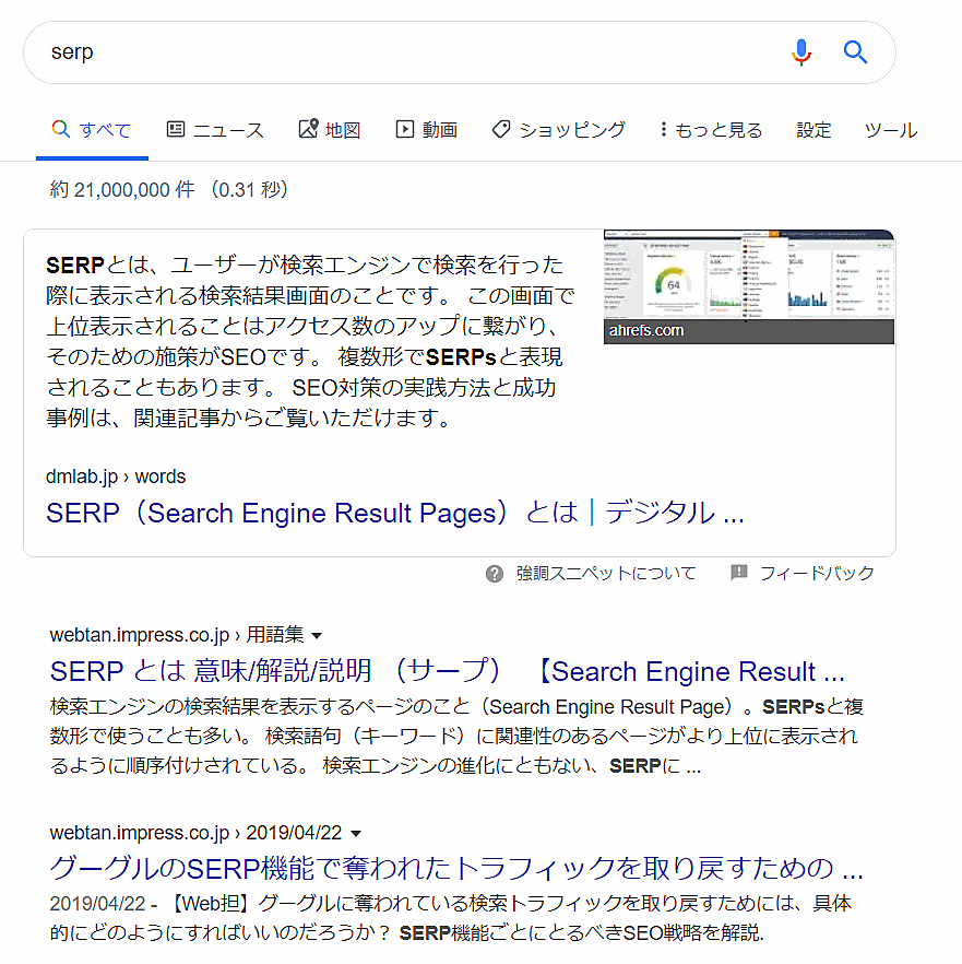 強調スニペットを獲得したら、「強調スニペット+通常の検索結果」の両方で検索ユーザーに興味をもってもらうチャンスがある。