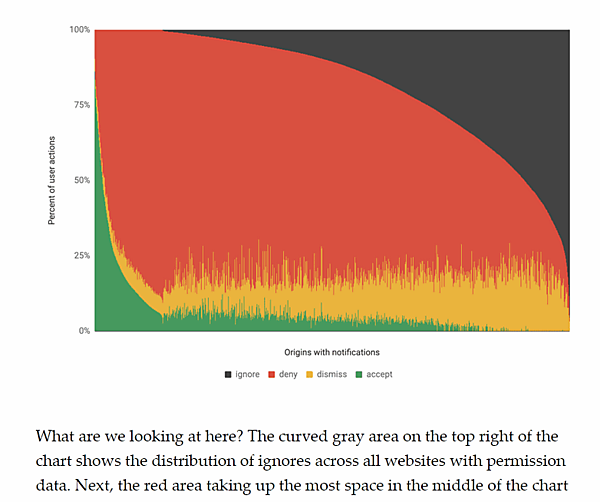 このCrUXのデータを利用して、プッシュ通知プロンプトに対してユーザーがどのように反応したかを調査した人がいる。