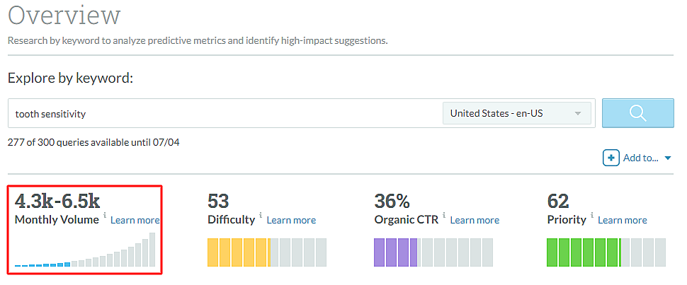 [tooth sensitivity]というクエリも月間4300~6500検索と、Quipにとって素晴らしいキーワードの機会だ。