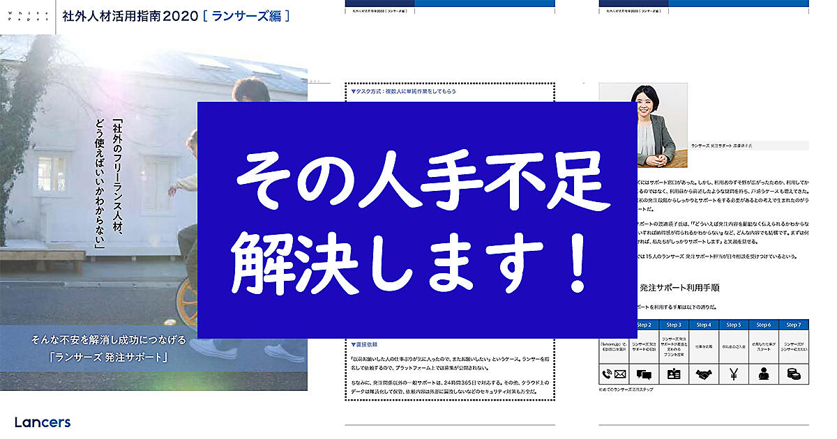 このホワイトペーパー「社外人材活用指南2020[ランサーズ編]」は、フリーランス人材マッチングプラットフォーム「ランサーズ」を通してどのような仕事を依頼できるのか、どこまでサポートをしてもらえるのか、どのような手順を踏めばスムーズに発注できるのかなどを順を追って解説し、フリーランス人材活用のノウハウがわかる内容となっている。