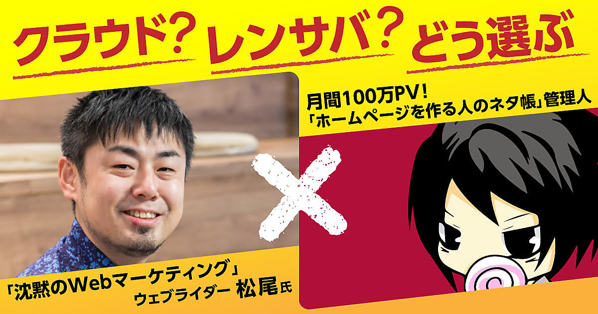 本記事では、Web集客コンサルタントとして、多くのWebサイトを制作・運用し続けてきたウェブライダーの松尾氏と、過去、最大で月間180万PVを稼ぐ人気ブログ「ホームページを作る人のネタ帳」を手掛けた山田氏に、企業のWebサイトにおけるサーバー選びのポイントについて、Web担当者Forum編集長の四谷が聞いてみた。