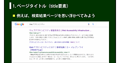 アクセシビリティといっても第一歩をなかなか踏み出せない人も多いと思います。最初に始めることとして「基本の『キ』」が参考になりますが、ポイントはどこでしょうか