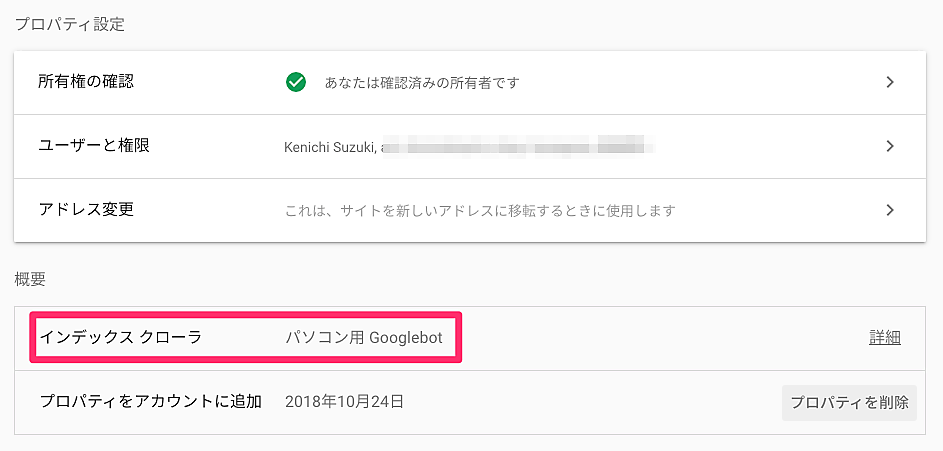 「インデックス クローラ」が「パソコン用 Googlebot」ならMFIにはまだ移行していないことを示す。