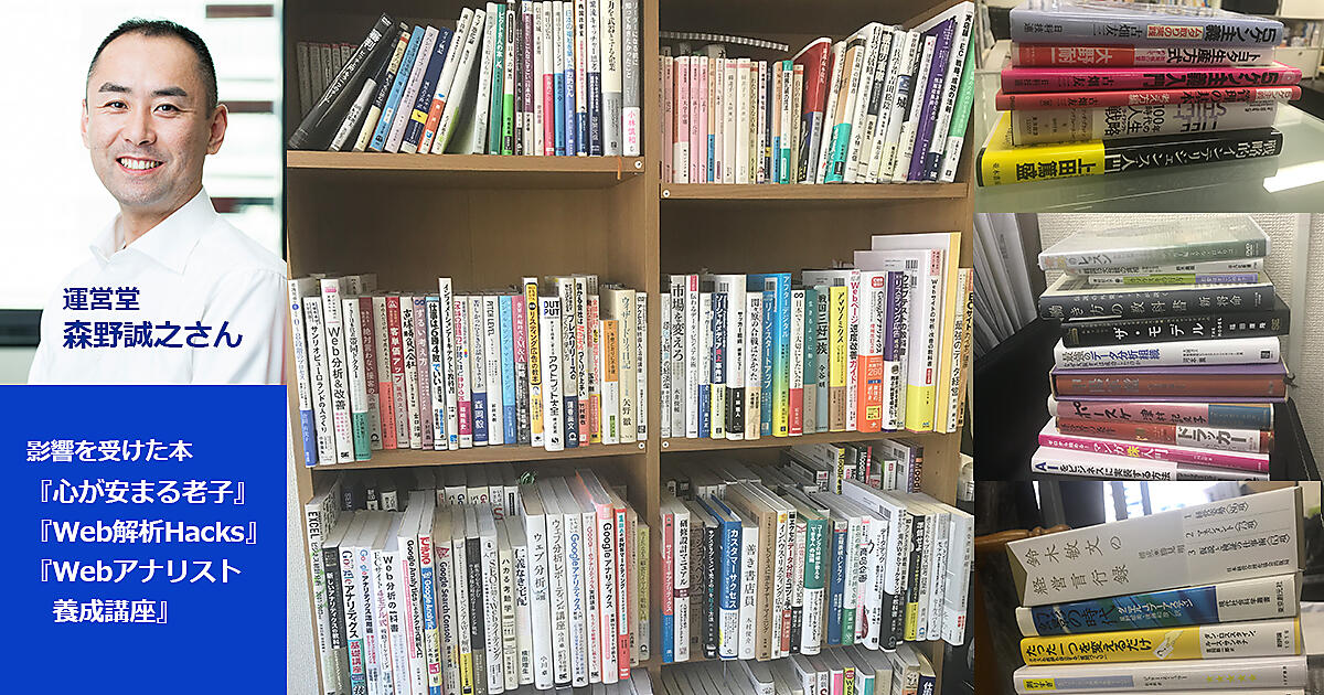 今回は、運営堂 森野さんの本棚を拝見!影響を受けたWeb解析の本だけでなく、いろんなジャンルの本を紹介してくださいました!