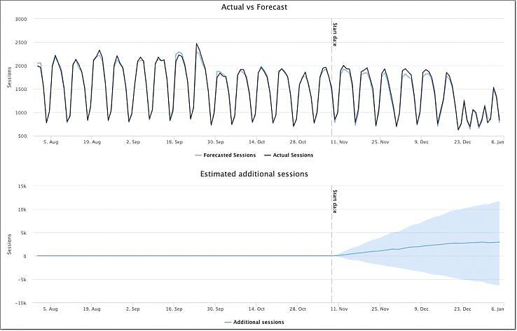信頼度95%で予測できるオーガニック検索セッション数の月間増加幅: